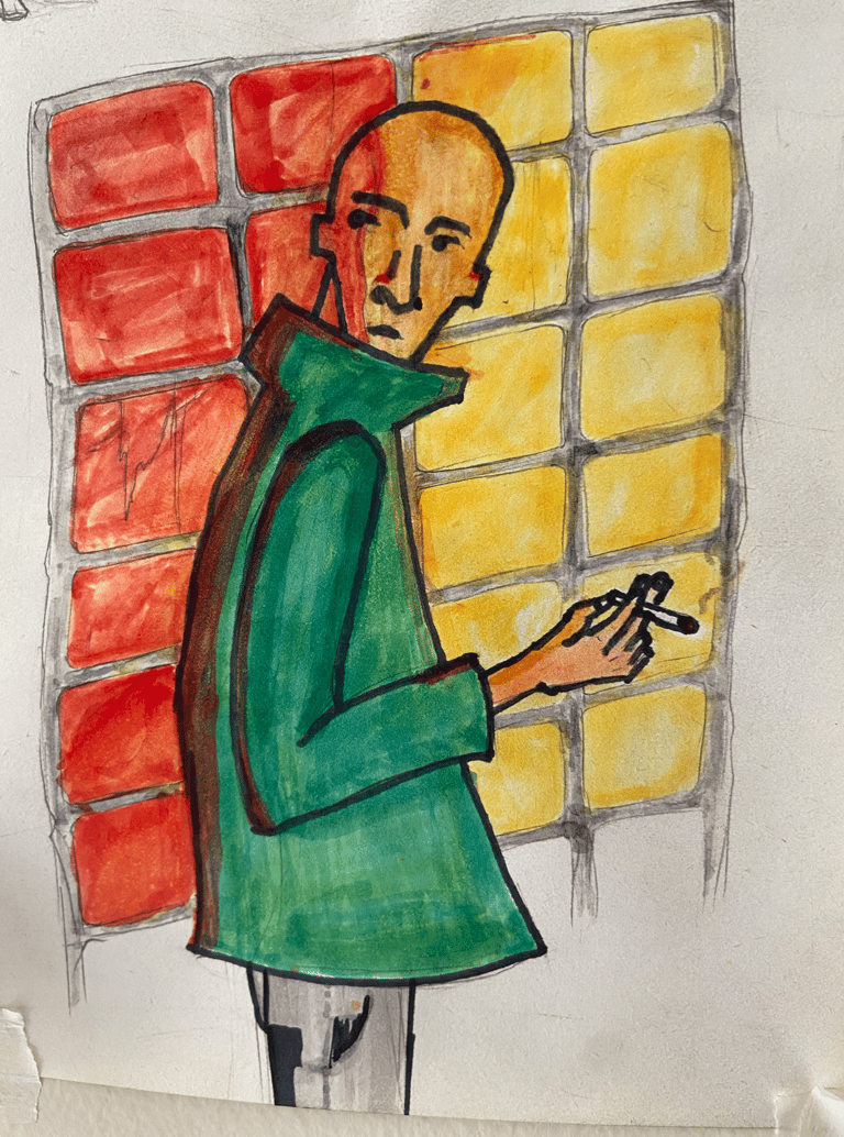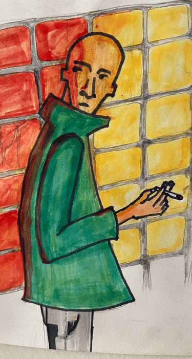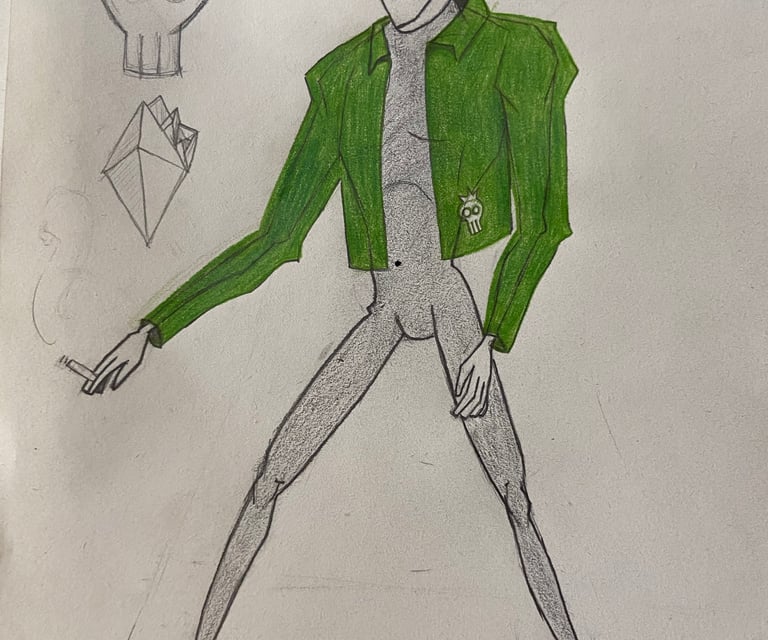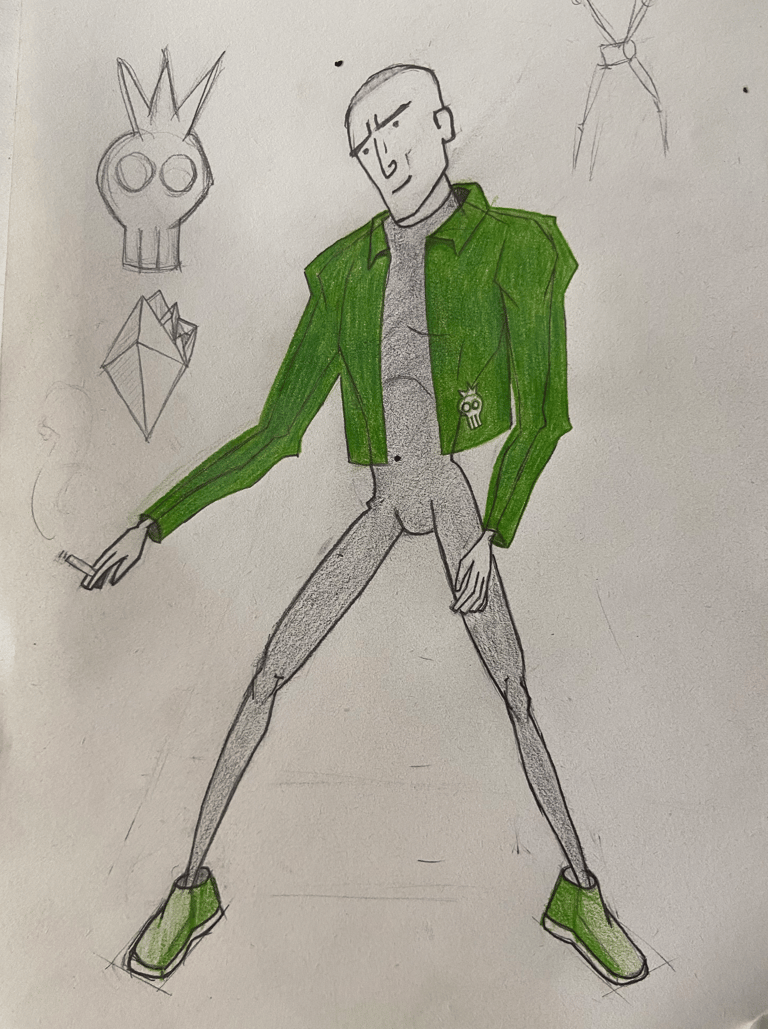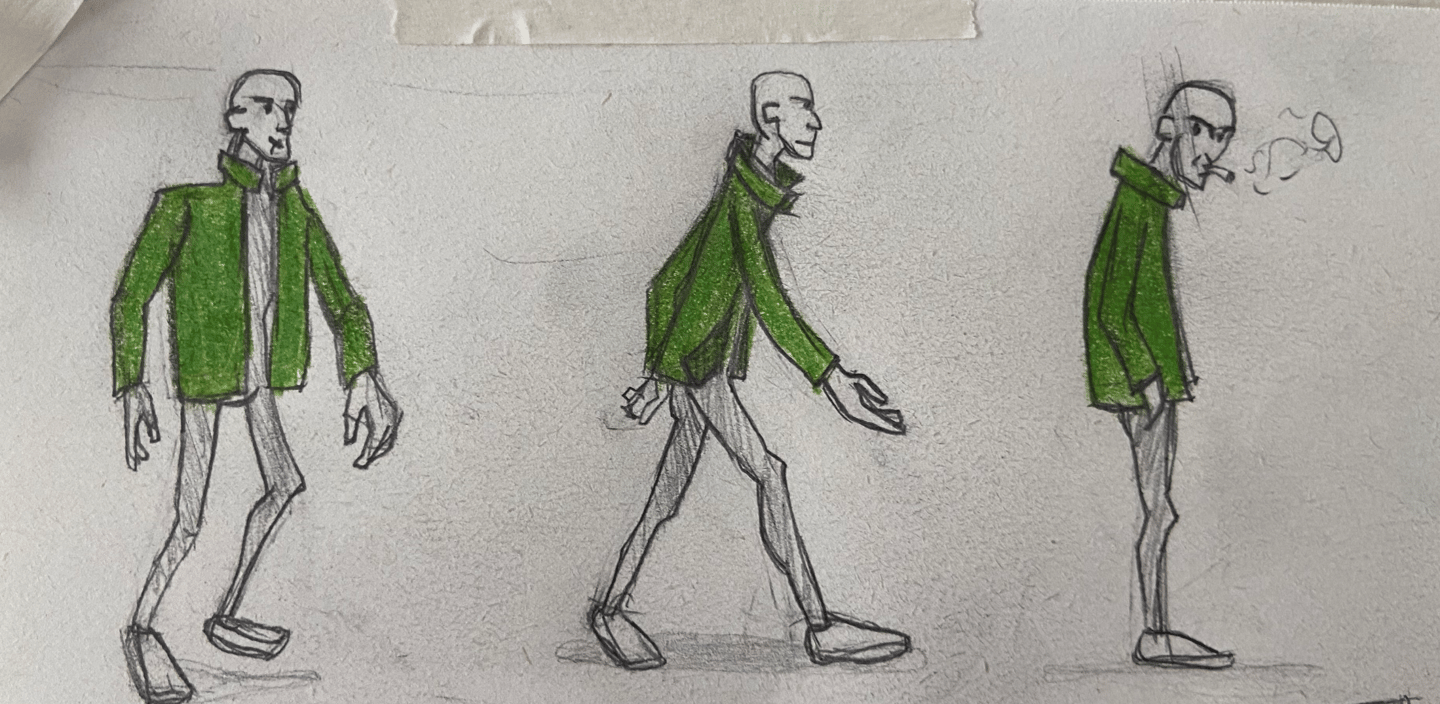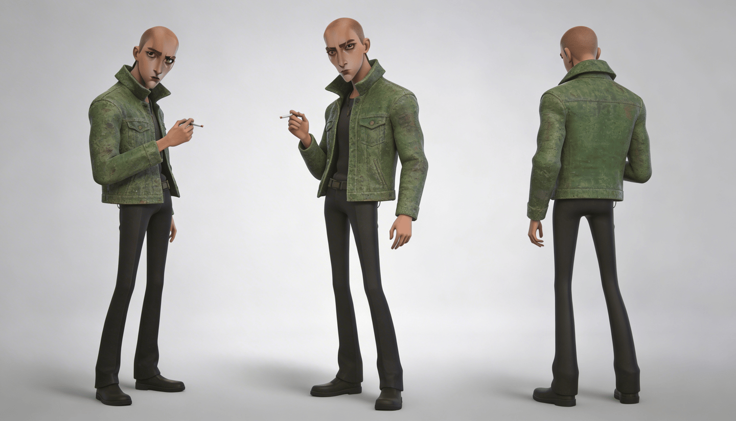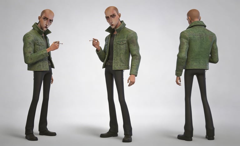 Mr Green Jacket é um personagem autoral desenvolvido para explorar a criação de filmes e roteiros com I.A